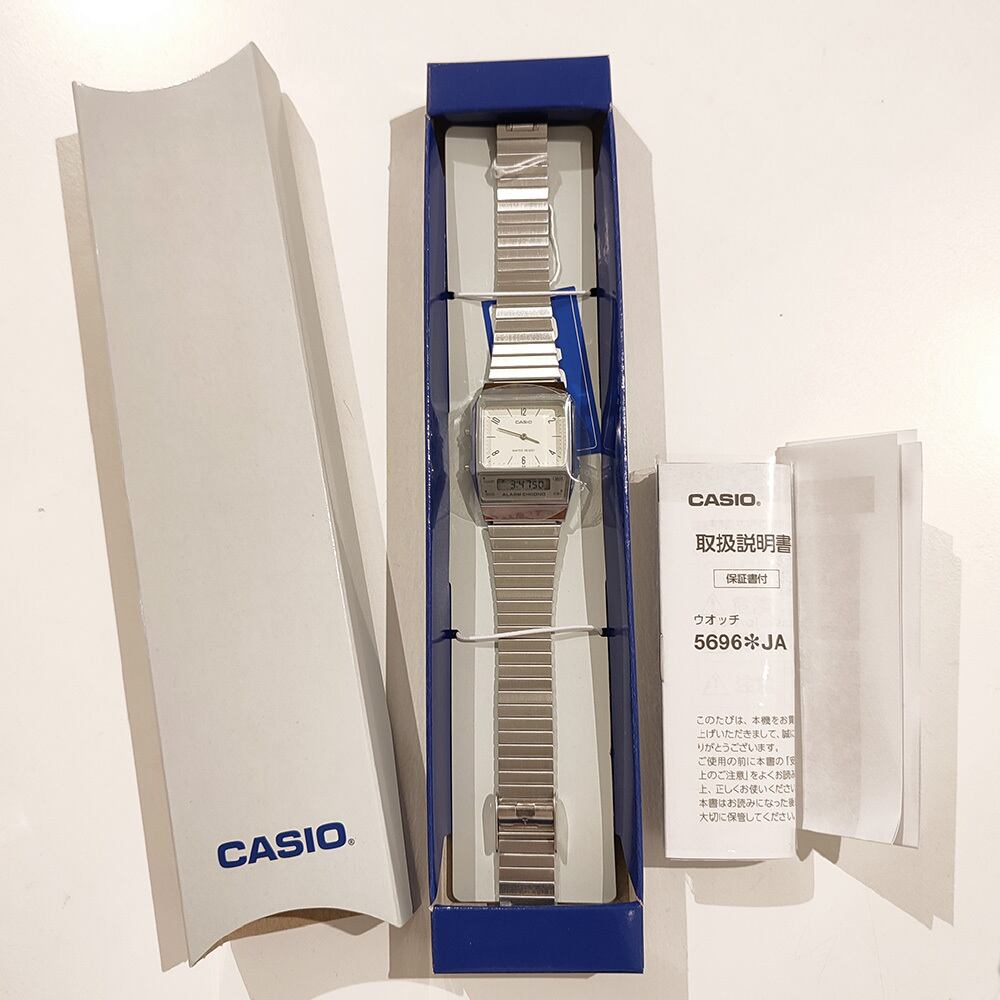 角型フェイスにアナログ時計とデジタル表示を組み合わせたAQ-230を、メッシュバンド仕様に仕立てたスタイリッシュなウオッチです。